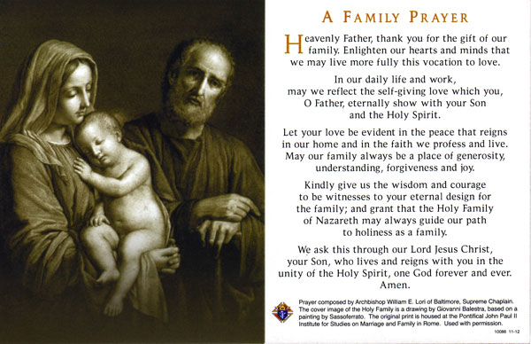 On to happier thoughts… I wish you all a Happy Family Day long weekend. I am attaching the Knights of Columbus Family Prayer as an aid to celebrating this special day.